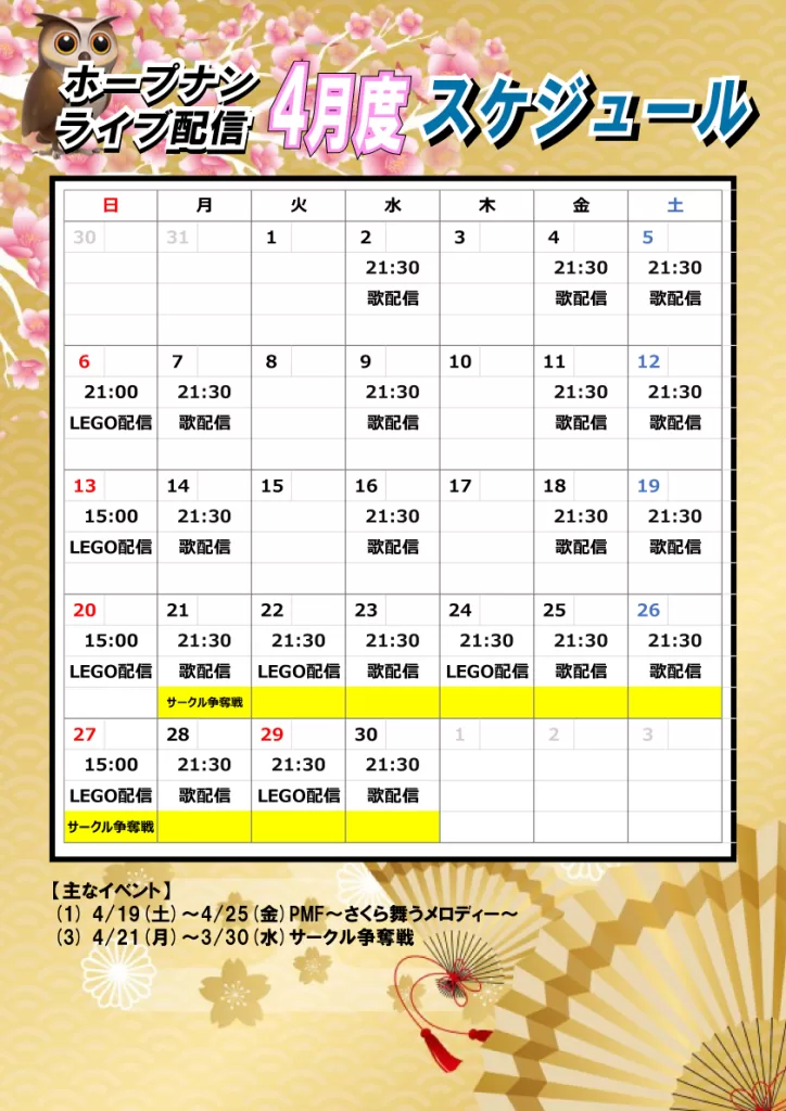 【ライブ配信情報】4月配信スケジュール